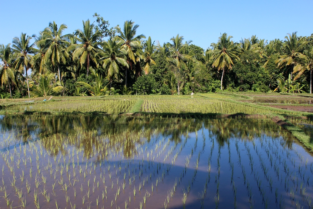 Храмът много ми хареса, един от шестте кралски храма е и е вписан в ЮНЕСКО, заедно с оризовите тераси в района. Построен през 17 век, в превод името му означава "красива градина". Нямаше туристи и посещението ми беше изключително спокойно и приятно. Отправих се към оризовите тераси на Jatiluwih. Надявах се като навляза в планините, да е по-малко населено и хората да не са толкова озверели от туризма. Не беше точно така, но все пак беше по-спокойно. Стопът все така не вървеше бързо, но след час ходене и безчет подвиквания за платен транспорт, успях да стигна целта с кола, камион и накрая джип със семейство местни. Племенникът на шофьора говореше малко английски, откараха ме до оризовите тераси и вече по тъмно минахме покрай мястото на входа на селото, където през деня таксуват всеки чуждестранен посетител. Оставиха ме в селото и се заех с търсене на място за палатката. След известно мотаене по пътечките из оризовите тераси, се установих недалеч от шосето и къщите, под покрива на нечия беседка. Щеше да ме пази от дъжда и се надявах само никой да не е забелязал присъствието ми и да остана на спокойствие до сутринта. Мястото обещаваше и върховна гледка през деня. Беше тихо и прекарах чудесна нощ. По принцип на такива места до село въобще не е добра идея да се спи, но този път рискувах и спечелих - нямаше дразнители, помагачи, любопитни, крадци, недоволни собственици или криви полицаи.
