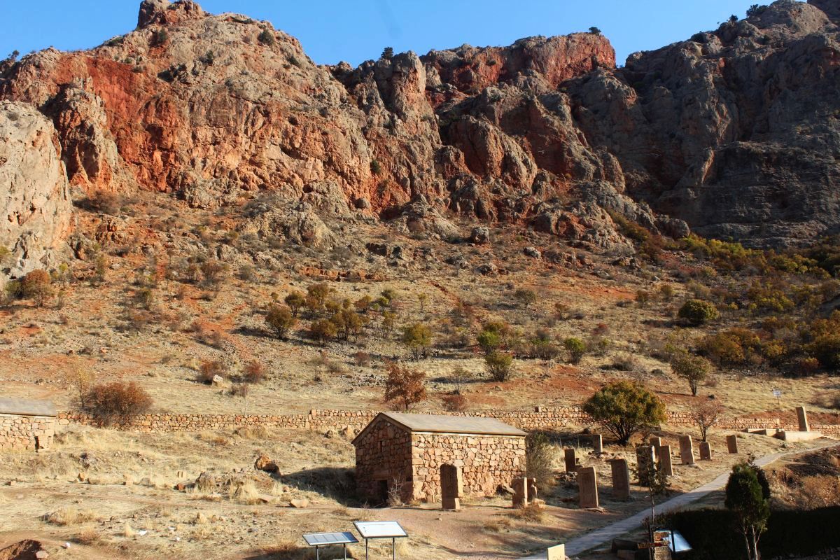 От края на града хванах стоп с две момчета за Степанакерт и слязох на разклона за Азок. Възнамерявах да посетя 2000 годишното дърво, намиращо се далеч нататък по пътя. Имах голям късмет със следващия стоп и благодарение на чичето с внука си, които ме взеха в джипа си, научих за страхотно място, което се превърна и в идеалното кътче за нощувка. Чичето ме откара до каньона, който се виждаше от Шуши, само че сега се озовах в ниската му част, където имаше пътека за разходка. Пътеката започва около 3 км встрани от главния път, след като се мине през селото и се кара по черен път. Води до уникален водопад с форма на чадър, който се намира на реката в сърцето на каньона. Преди да се стигне до него, се минава през руини от старо село, което е съществувало тук през 18-ти и 19-ти век, но е било изоставено. Има останки от сгради, мост и гробища. Високо в скалите се виждат пещери, които преди векове са служели като жилища. Първо се качих до старо гробище, а пътека след него отвеждаше до една от големите пещери. След това стигнах и до водопада, но ставаше тъмно и се върнах малко назад до първата удобна за палатка поляна. Нощта мина прекрасно с изключение на студа, заради който цяла нощ се завивах презглава с чувала и се душех, та постоянно се събуждах. Но иначе мястото беше просто прекрасно.