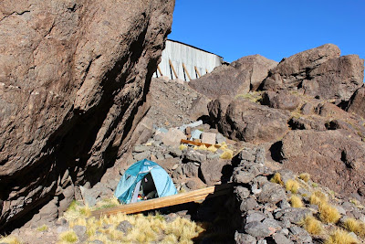 Слязох до Лас Куевас с полицаите и после с другарчето тръгнахме надолу по пътя да търсим място за палатка. Установихме се на завет край една голяма скала, точно до останките от жп линията и близо до рекичката. Беше студена нощ, но сутринта бяхме по-смразени, защото трябваше да се къпем и да си перем всичките дрехи в реката. Водата тук бе по-студена от всичката вода, която до момента сме срещали. Десетки пъти в това пътуване се къпах в езера на голяма височина, дори едно на 5000 метра, в което не просто се къпах, но и влязох да плувам и не ми беше студено, да не говорим за всички реки и потоци, идващи директно от някой ледник... но на мен никога не ми беше било студено. Тук обаче кръвта ми се смрази, прането бе страшна мъка, защото пръстите на ръцете ми замръзваха при допира с водата и целите почервеняваха, а когато влязох в реката да се изкъпя, краката ми така се вкочаниха, че едва успях да изляза. Слънцето обаче напече и поне изсуши прането до края на деня. Общо взето цял ден почивахме, четохме и готвихме. Беше един от най-хубавите ни дни в страната. Никой не мина наблизо, мястото бе добре скрито от пътя, а и пешеходци нямаше.