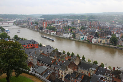 В Намюр ме удари съвсем лек културен шок. :) Хората вече не говореха фламандски, а френски. И докато в другата част на Белгия всички говореха и английски, във френската далеч не беше така. Тук много по-малко хора знаеха английски и не искаха да го говорят, така че трябваше да превключа на други честоти - тези на "нямския" език, който ми е влизал в употреба в много на брой държави :) Все пак се надявах доста хора да разбират поне малко английски, както и да науча по-бързичко френски, защото Франция тепърва предстоеше. Също така много се впечатлих, че има доста повече негри във френската част, както и че е много по-очукано и мръсно, градовете не са толкова поддържани. Хората изглеждаха доста по-освободени и нецивилизовани в сравнение с тези във Фландрия. Имаше хора, говорещи на висок тон, а някакви негри дори се биеха близо до автогарата. Натруфени негърки пък ходеха бая разголени в иначе студения и дъждовен ден. Времето и тук обаче бе същото като в останалата Белгия - ужасно! Отначало като пристигнах ми даде около час-два отдих от дъжда, но по-късно направо ме смаза и ми развали деня. Първо разгледах центъра, след което се качих на цитаделата, която е безплатна за посещения и предлага фантастични гледки към града. Дори в дъждовното време гледките си струваха, представям си какво е в слънчев ден (ако изобщо има такъв). Дъждът ме запука на цитаделата, скрих се в едно тунелче и зачаках да спре. Така си и останах - с чакането. Очевидно нямаше да спре, мина час и накрая се предадох - завих раницата с покривалото за дъжд, отворих чадъра и продължих да разглеждам цитаделата, отчаяно опитвайки се да опазя фотоапарата сух на всяка цена.