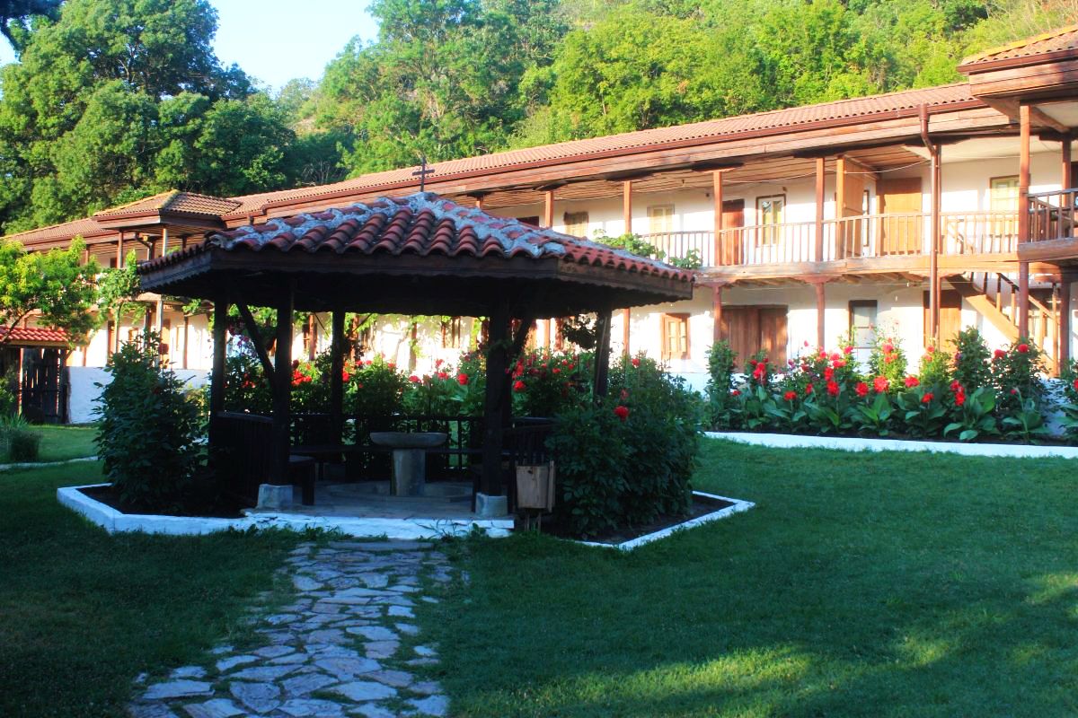 Преди да посетя манастира за трети път в живота си, реших да потърся намираща се наблизо пещера, която някога е била скален манастир. Тръгнах погрешно обаче - право към един кръст, намиращ се на стръмен склон над манастира. Пещерата не беше там, но пък гледката беше страхотна и въобще не съжалих за драпането по склона. После открих пътеката към пещерата, започва от края на поляната северно от манастира, следвайте рекичката. Има кътче за отдих там, няма табели за ориентация, но се следва само главната пътека и се стига до пещерата след малка доза ходене. Батериите на фотоапарата ми бяха почти нацяло изтощени и едва успях да я снимам преди съвсем да изцедя и втората батерия. В манастира успях скришно да заредя едната частично, имаше контакт близо до входната врата на църквата и докато се мотаех из двора, включих зарядното за половин час. Църквата беше заключена, но щом една монахиня ме забеляза, веднага дойде да ми отключи. Беше силно разочарована, когато споделих, че църквата е много красива и само я разгледах без да паля свещи. Заяви, че тук не било за гледане, а само за молене. На въпроса ми дали мога да снимам за спомен, отговорът беше категорично не. Добре, че предното лято като водих баба ми тук, ни отвори един много приятен свещеник, който нямаше нищо против снимането вътре. Тази обаче беше като кон с капаци, видимо много ограничена и фанатично религиозна дотолкова, че ако кажеш добра дума за красотата на църквата, става по-кисела от лимон. Добре, че не видя зарядното на апарата, иначе кой знае колко щеше да се ядоса и да ми се кара. Тръпки ме побиват от религиозни хора...